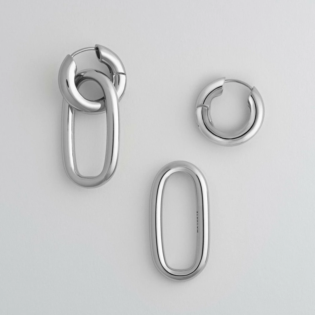Chunky, hinge-style hoops with Oval Charm in Silver Rhodium plate.