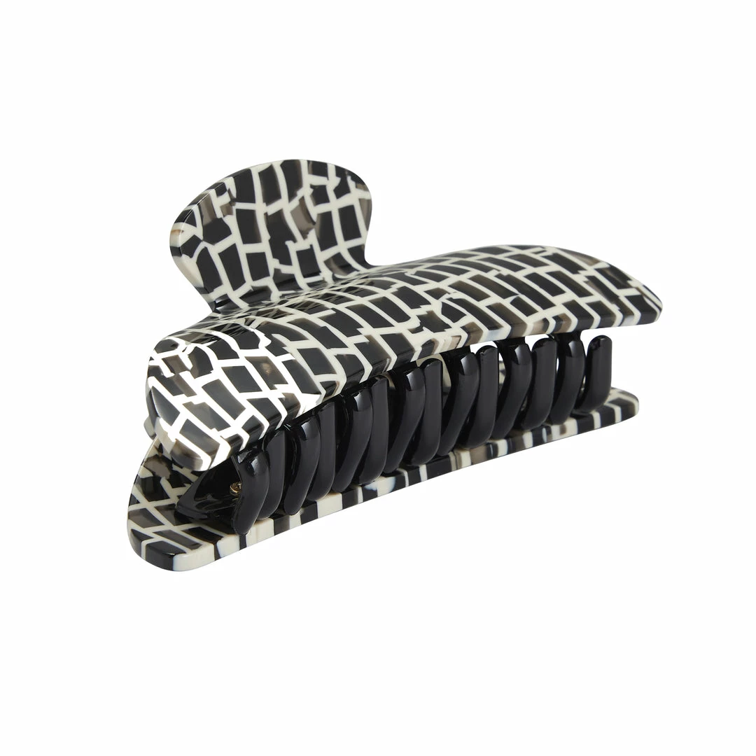 The model wears our Midi Heirloom Claw in Stromanthe.