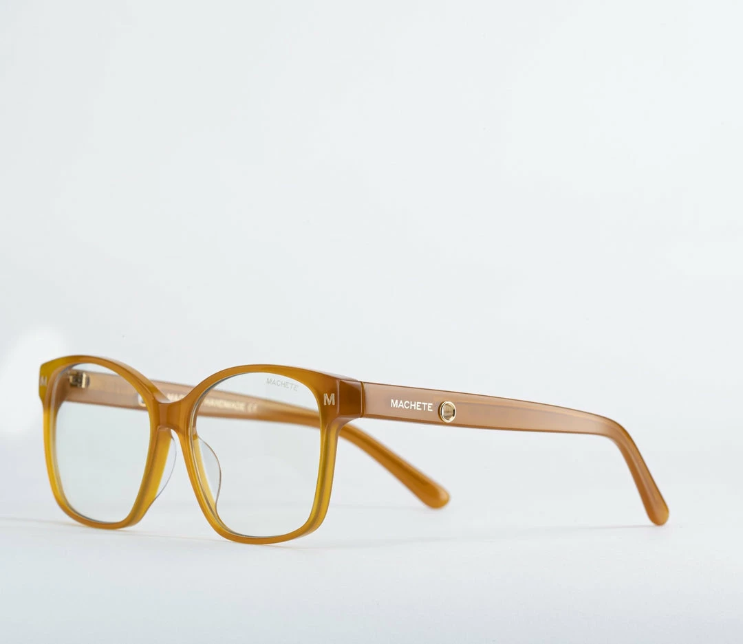 Handcrafted from the most environmentally friendly and highest-quality acetate on the market today, Jenny is a truly classic frame with a slightly oversized shape reminiscent of ‘70s style. Adorned with a gold Machete logo and hardware as well as a ring for your eyeglass chain at the temples.