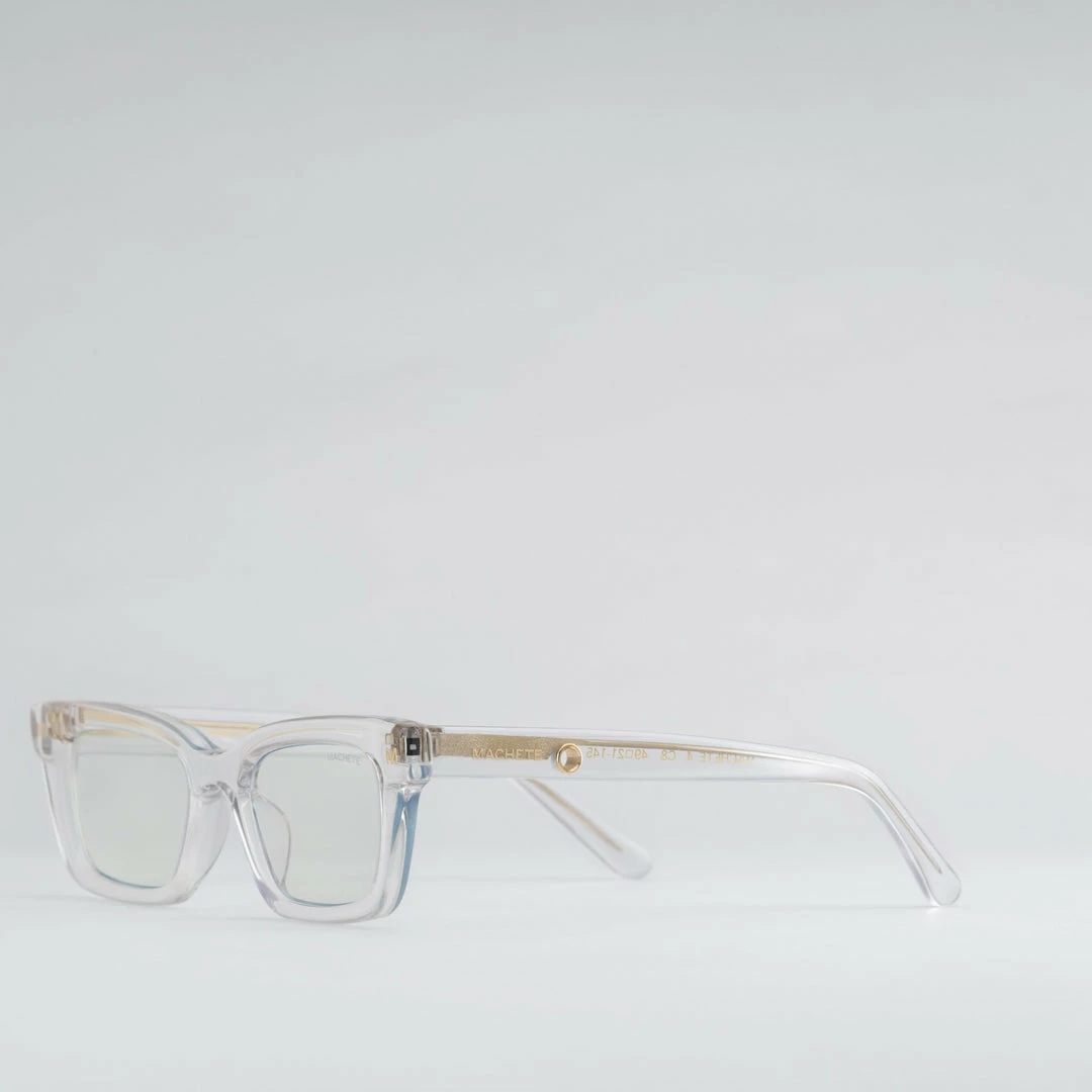 This ā90s inspired rectangular frame in Macheteās signature show-stopping acetate brings the chic style of this iconic decade to the modern era. Handcrafted from the most environmentally friendly and highest-quality acetate on the market today to ensure your frames will not only last but be kind to the planet as well. A gold Machete logo, hardware as well as a ring for your eyeglass chain at the temples.