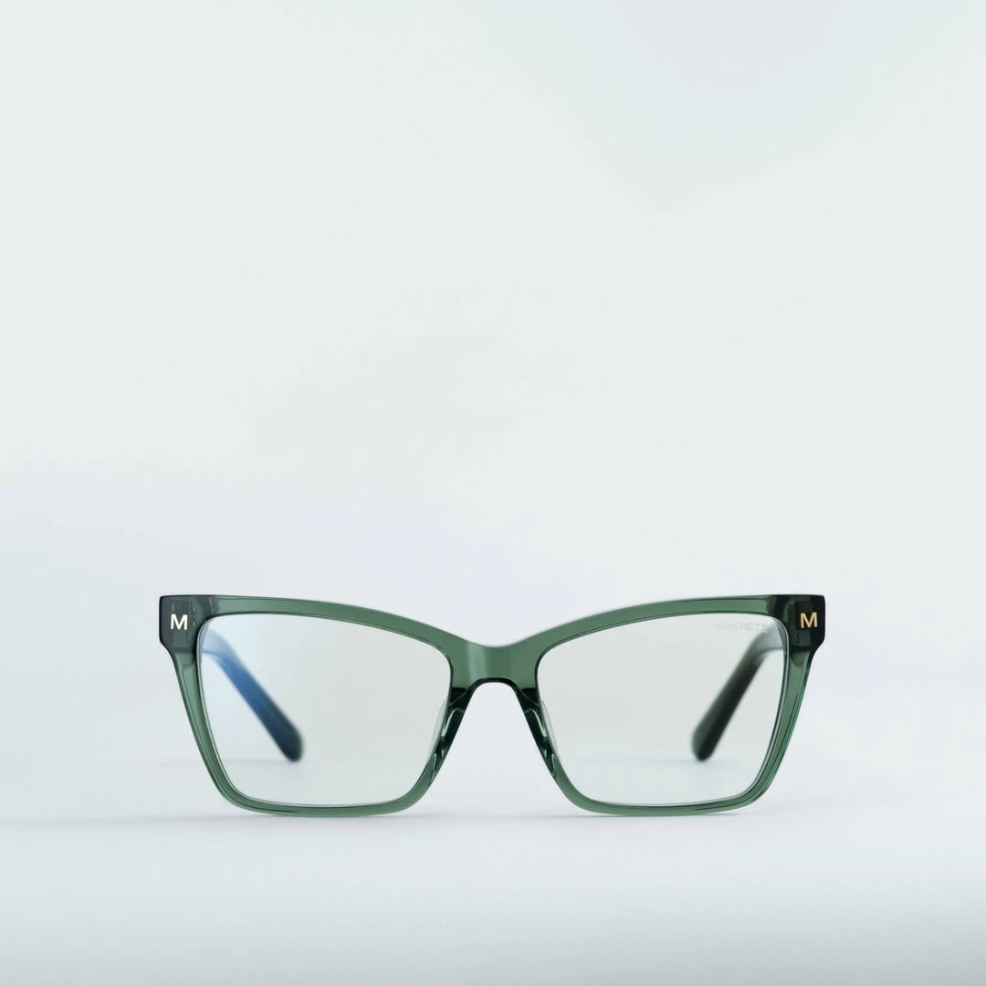 With a subtle cat-eye shape and sharp-edged frame, Sally hits the mark at all angles. Handcrafted from the most environmentally friendly and highest-quality acetate on the market today to ensure your frames will not only last but be kind to the planet as well. Adorned with a gold Machete logo and hardware as well as a ring for your eyeglass chain at the temples.