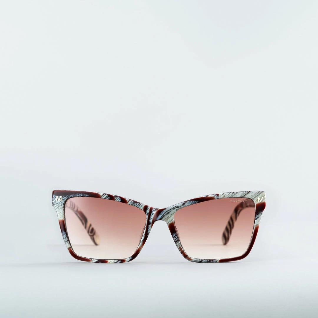 With a subtle cat-eye shape and sharp-edged frame, Sally hits the mark at all angles. Handcrafted from the most environmentally friendly and highest-quality acetate on the market today to ensure your frames will not only last but be kind to the planet as well. Adorned with a gold Machete logo and hardware as well as a ring for your eyeglass chain at the temples.