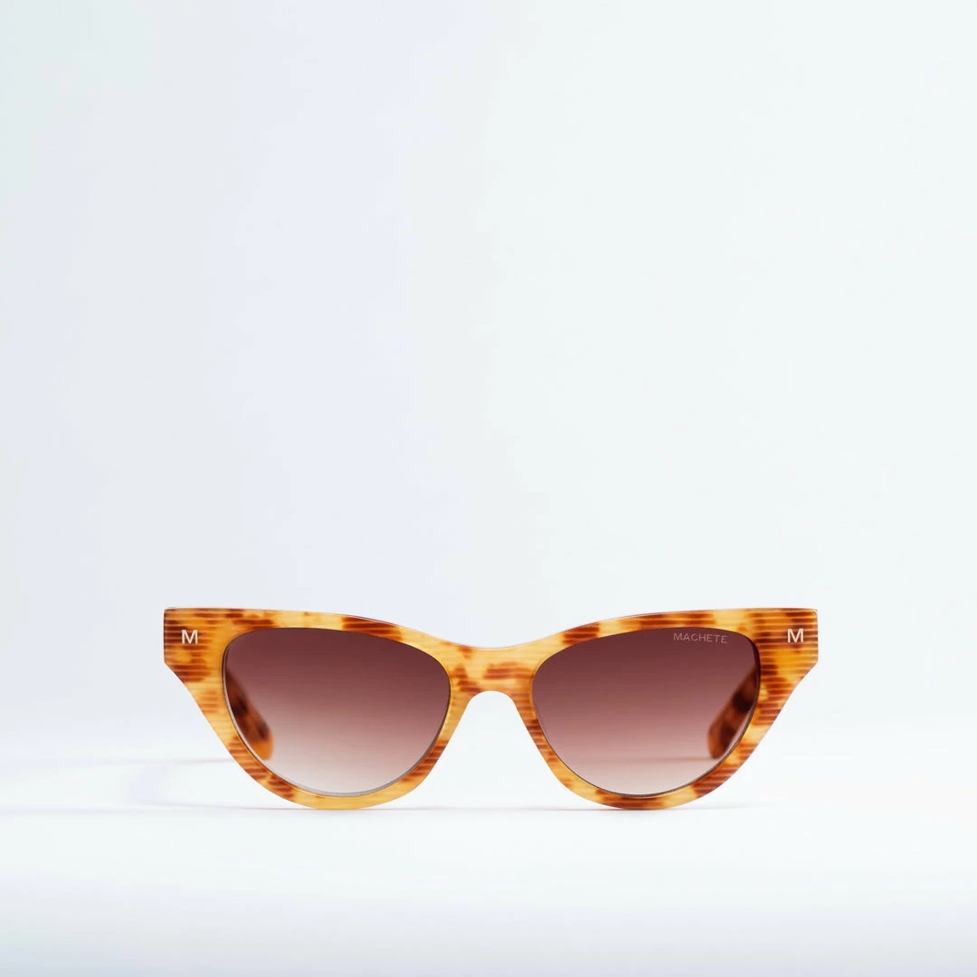 Take any ensemble to the next level with Suzy, our ultra-sleek narrow cat-eye frame. Handcrafted from the most environmentally friendly and highest-quality acetate on the market today to ensure your frames will not only last but be kind to the planet as well. Adorned with a gold Machete logo and hardware as well as a ring for your eyeglass chain at the temples.